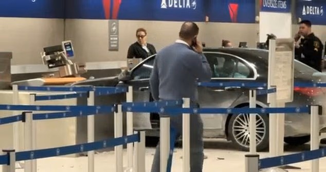 Döbbenetes jelenetek zajlottak le a Detroit Metropolitan Wayne County Airport egyik terminálján, amikor egy autó áttörte a bejárat üvegajtaját, majd a csarnokban állt meg.