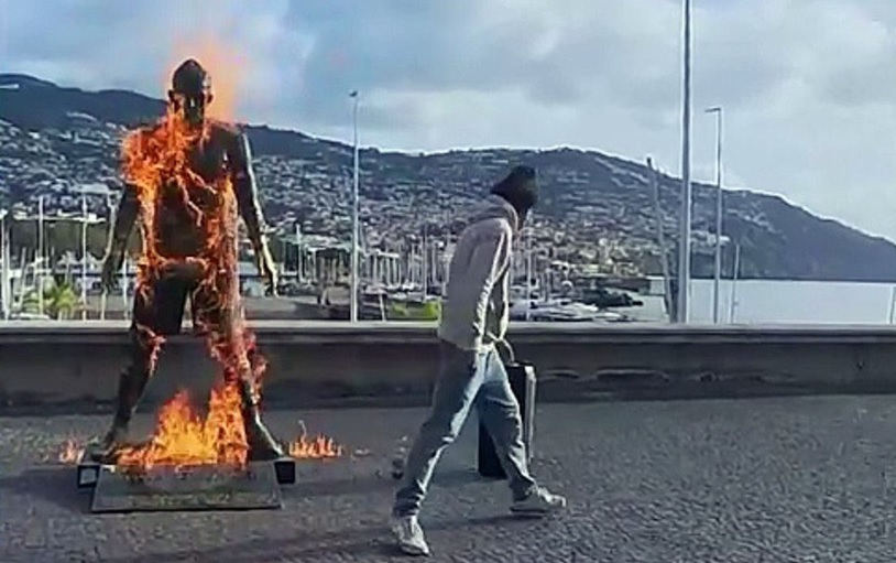 Botrány Ronaldo szülővárosában: lángba borult a CR7 Múzeum előtti szobor, már elfogták a tettest.